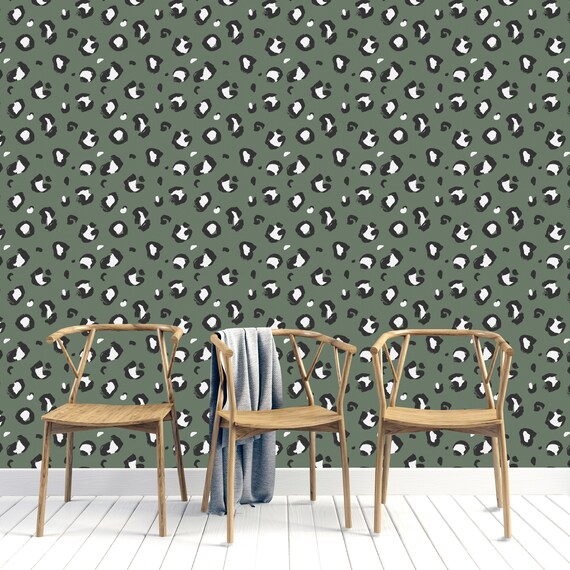 Leopard Print Wallpaper Sage Etsy Uk