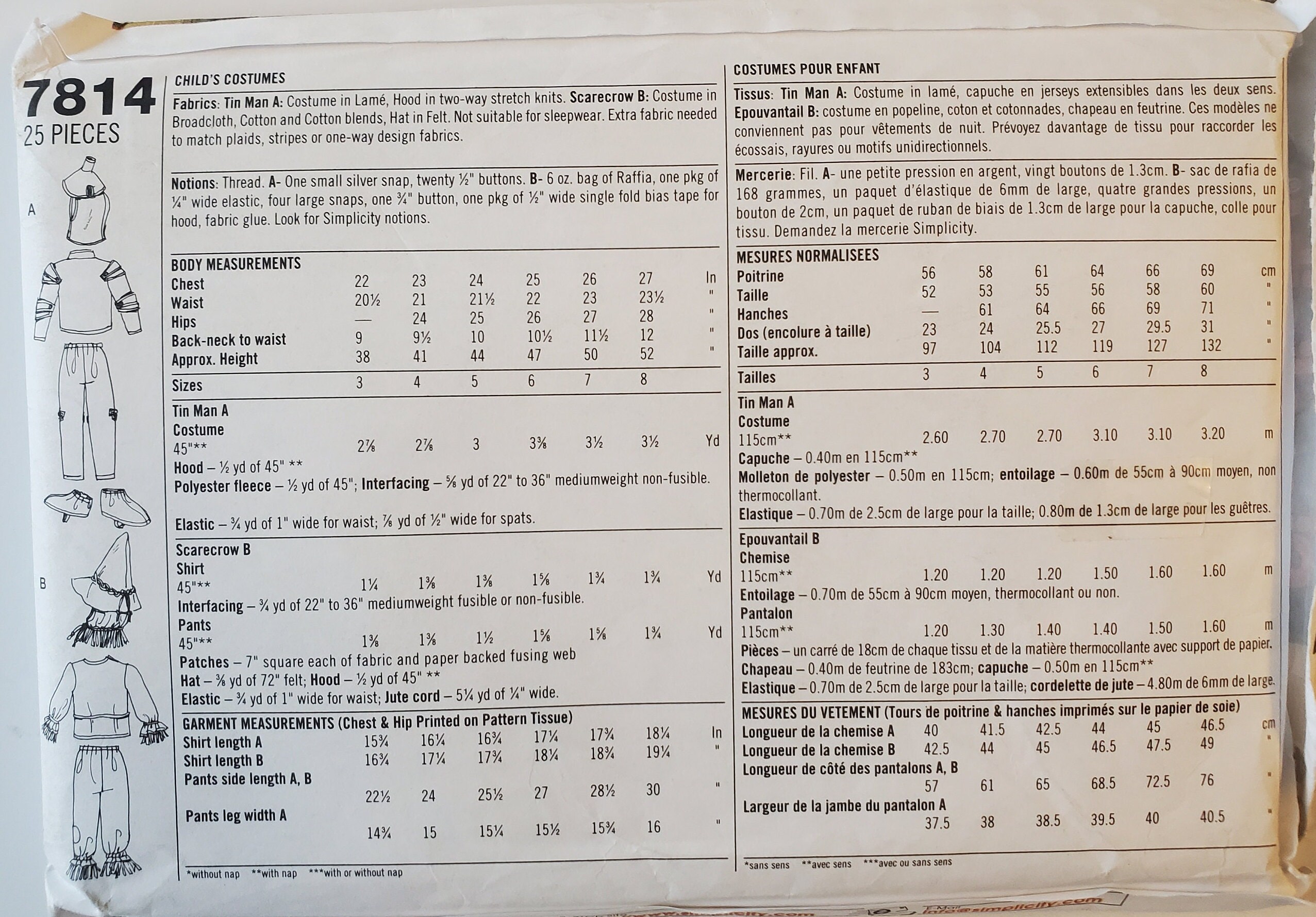 Children S Sewing Pattern For Tin Man And Scarecrow Etsy Israel